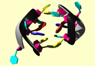 The BMRB entry link is to the NMR experimental data deposited with BMRB. Below that, a link is provided to the PDB entry used to generate the images. The reverse index can be found here. The image itself links to a larger version. Information on how to use this resource to show a "Molecule of the Hour" on your windows desktop is given here.