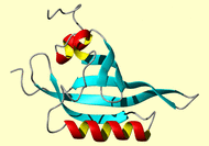 The BMRB entry link is to the NMR experimental data deposited with BMRB. Below that, a link is provided to the PDB entry used to generate the images. The reverse index can be found here. The image itself links to a larger version. Information on how to use this resource to show a "Molecule of the Hour" on your windows desktop is given here.