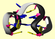 The BMRB entry link is to the NMR experimental data deposited with BMRB. Below that, a link is provided to the PDB entry used to generate the images. The reverse index can be found here. The image itself links to a larger version. Information on how to use this resource to show a "Molecule of the Hour" on your windows desktop is given here.