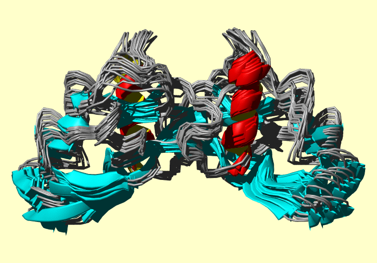 Koradi,R., Billeter,M. and Wuthrich,K. (1996). MOLMOL: a program for display and analysis of macromolecular structures. J. Mol. Graph. 14, 51-55.