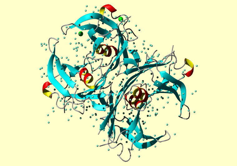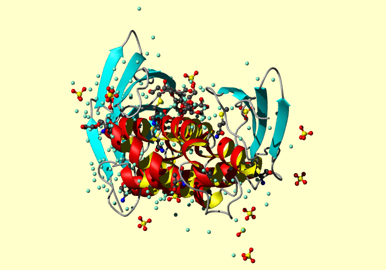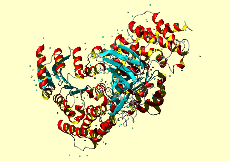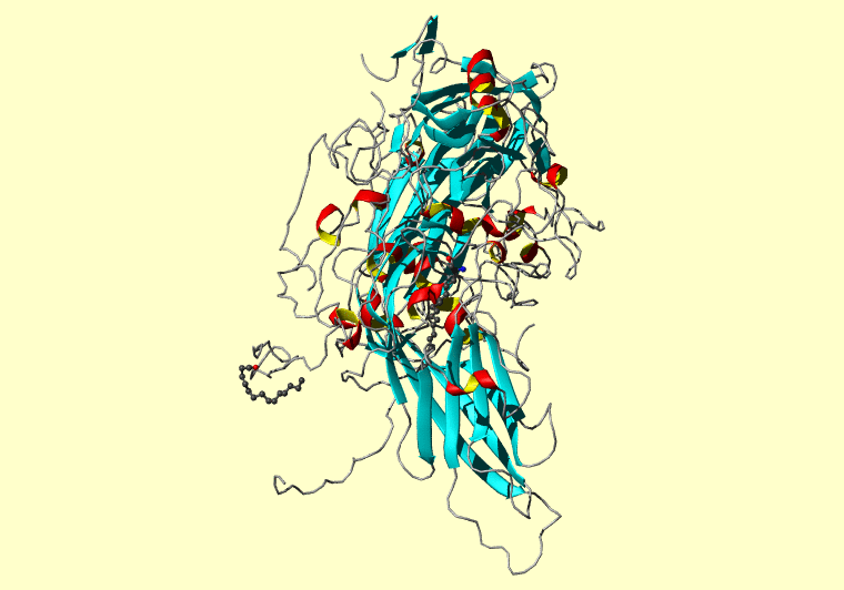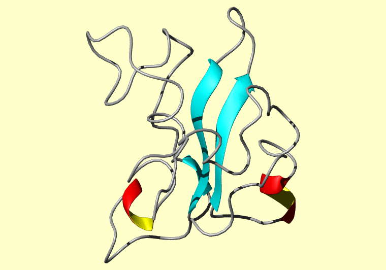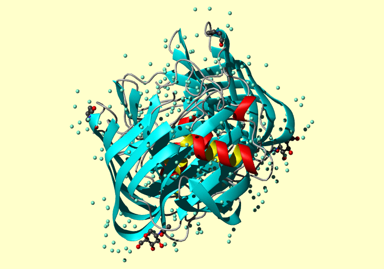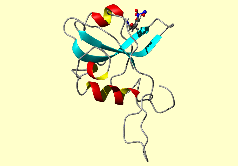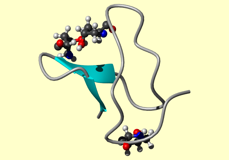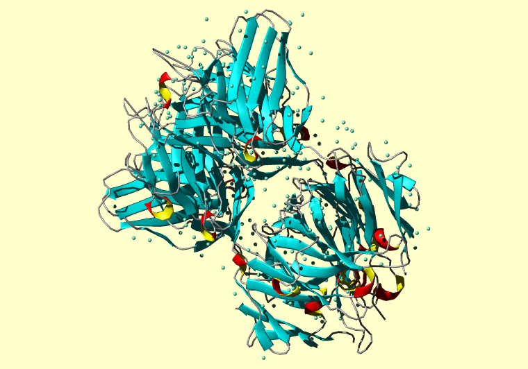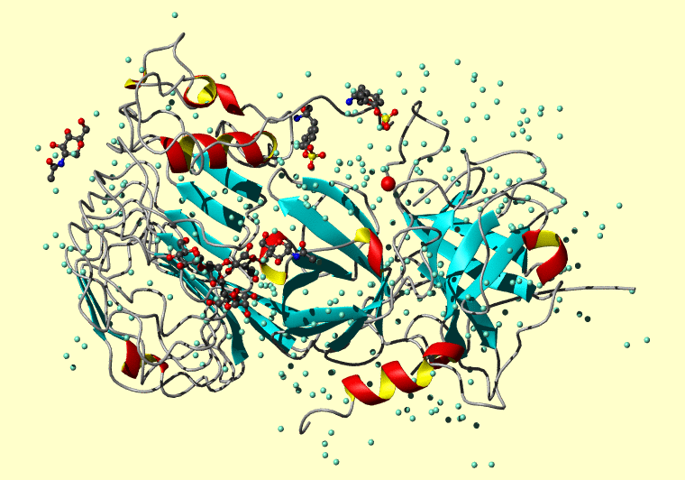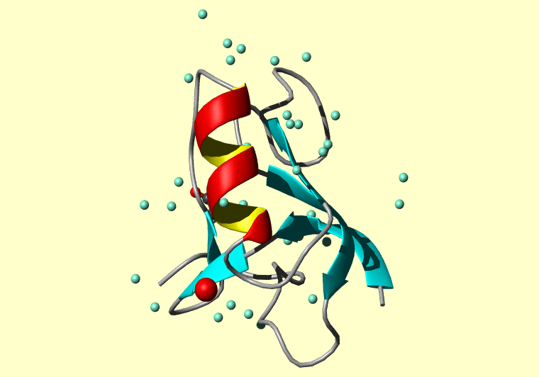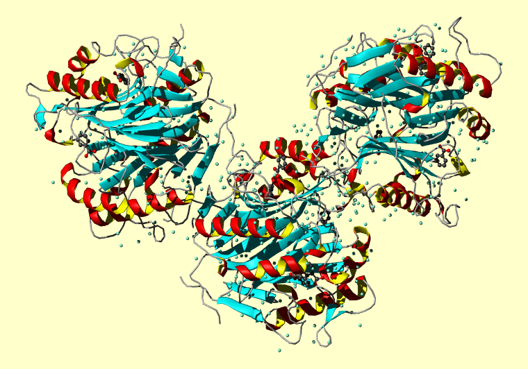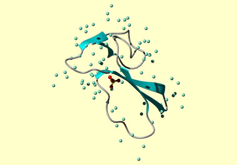 The PDB entry link is to the RCSB PDB site. Below that, a link to the BMRB entry is given for those PDB entries originating from NMR studies that have NMR experimental data deposited with BMRB. The reverse index can be found here. A version with white background exists here. The image itself links to a larger version. Information on how to use this resource to show a "Molecule of the Hour" on your windows desktop is given here.