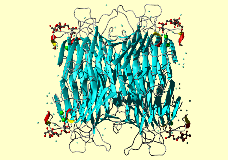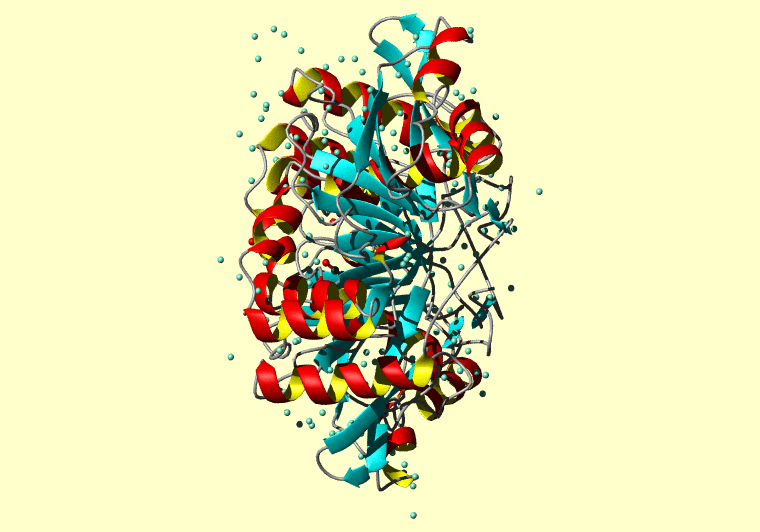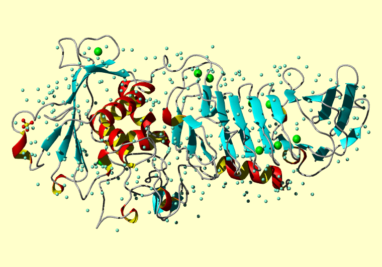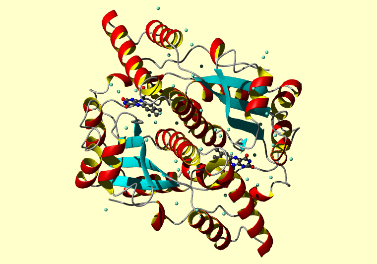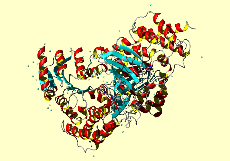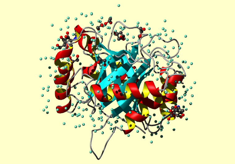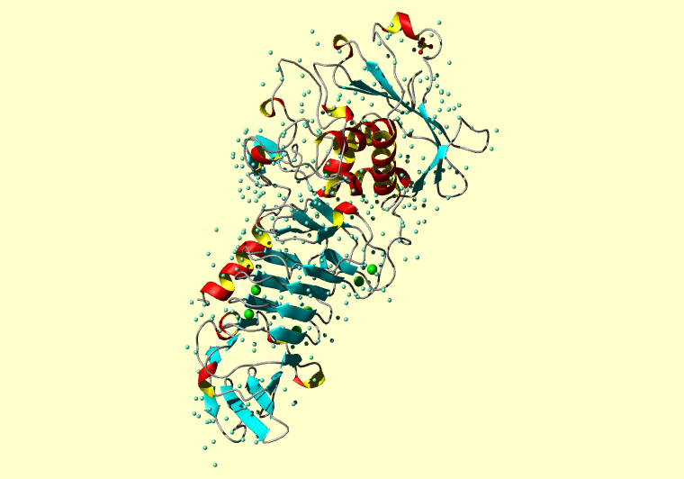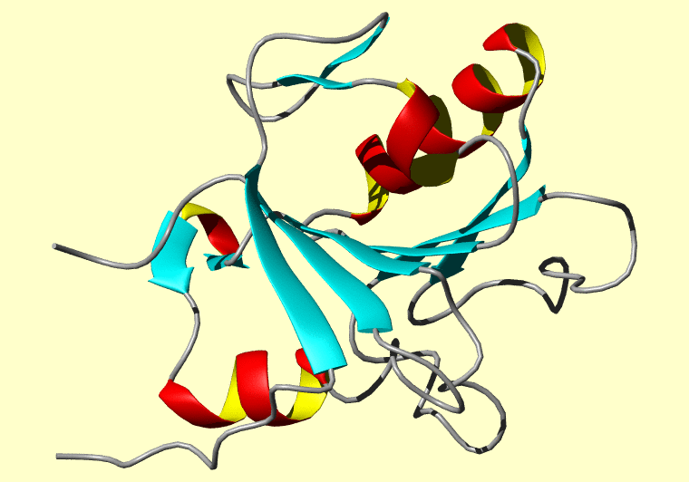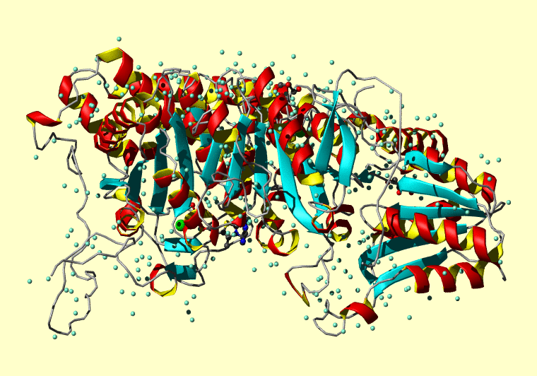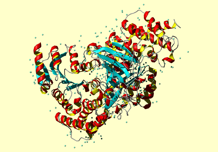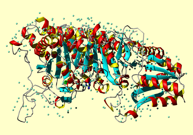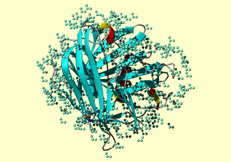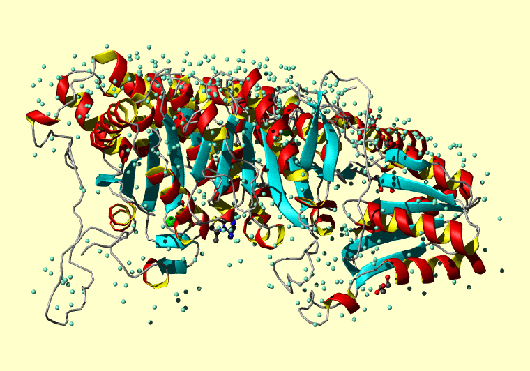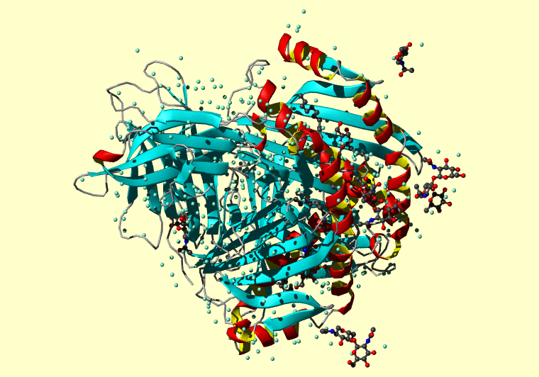 The PDB entry link is to the RCSB PDB site. Below that, a link to the BMRB entry is given for those PDB entries originating from NMR studies that have NMR experimental data deposited with BMRB. The reverse index can be found here. A version with white background exists here. The image itself links to a larger version. Information on how to use this resource to show a "Molecule of the Hour" on your windows desktop is given here.