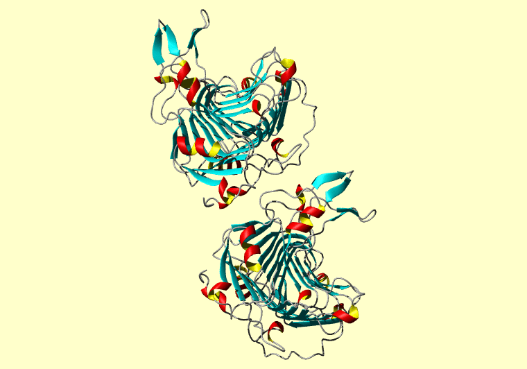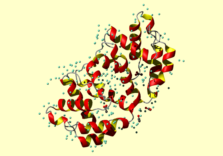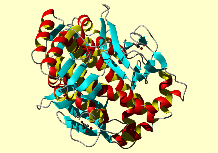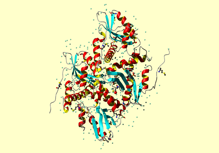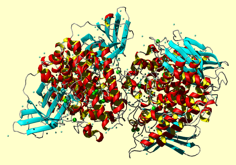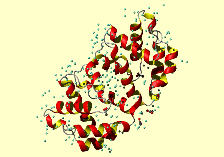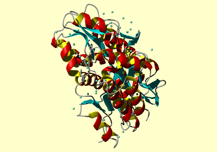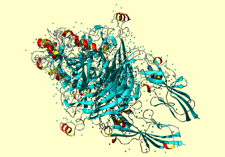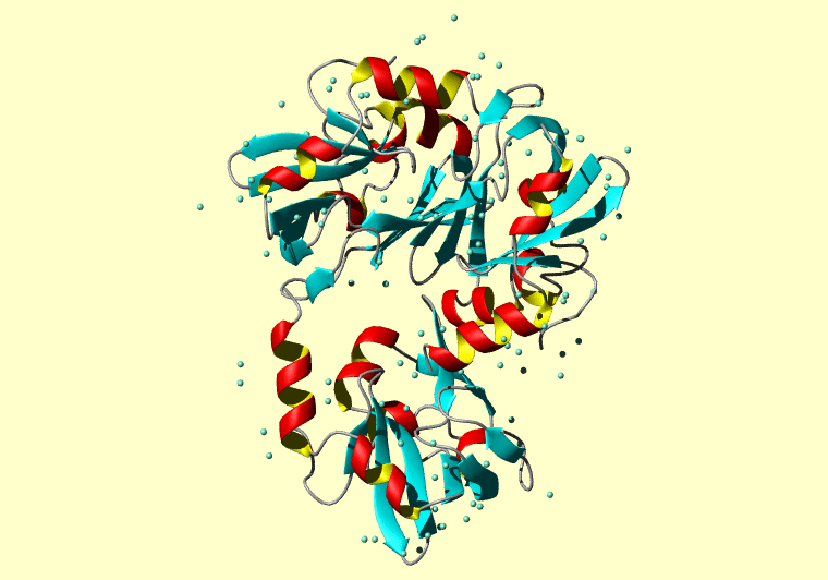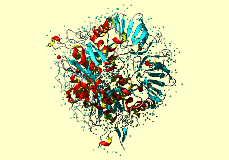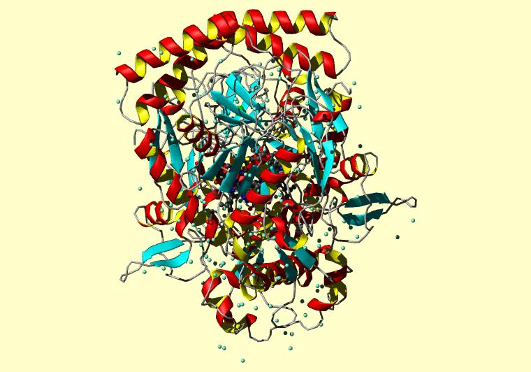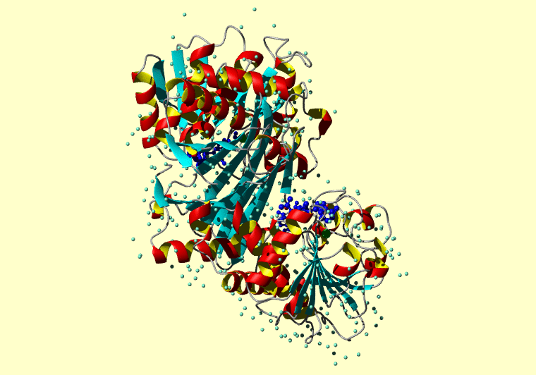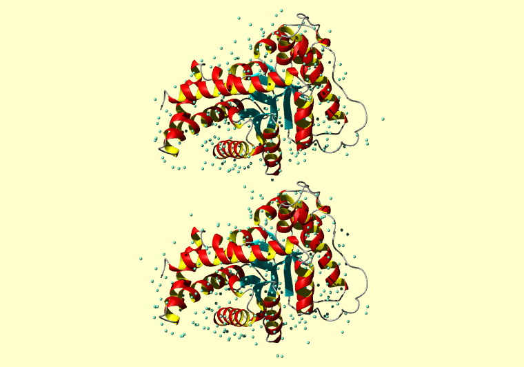 The PDB entry link is to the RCSB PDB site. Below that, a link to the BMRB entry is given for those PDB entries originating from NMR studies that have NMR experimental data deposited with BMRB. The reverse index can be found here. A version with white background exists here. The image itself links to a larger version. Information on how to use this resource to show a "Molecule of the Hour" on your windows desktop is given here.