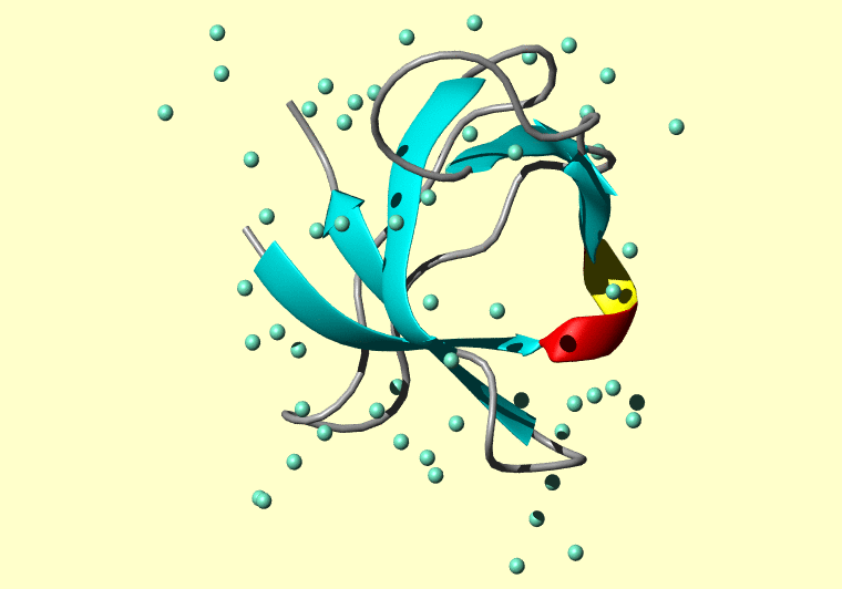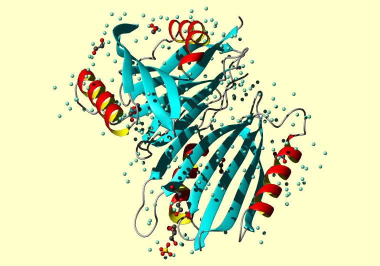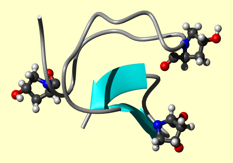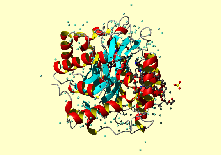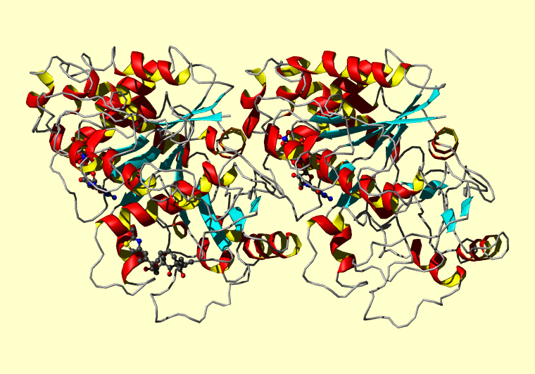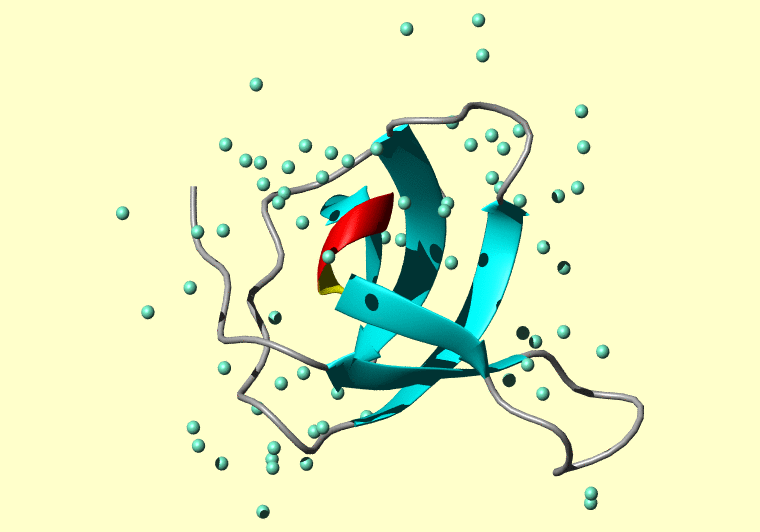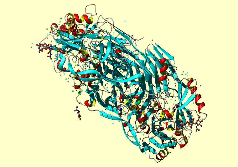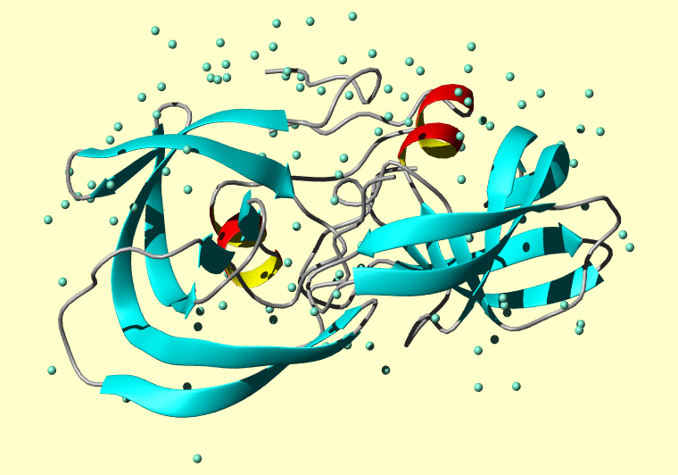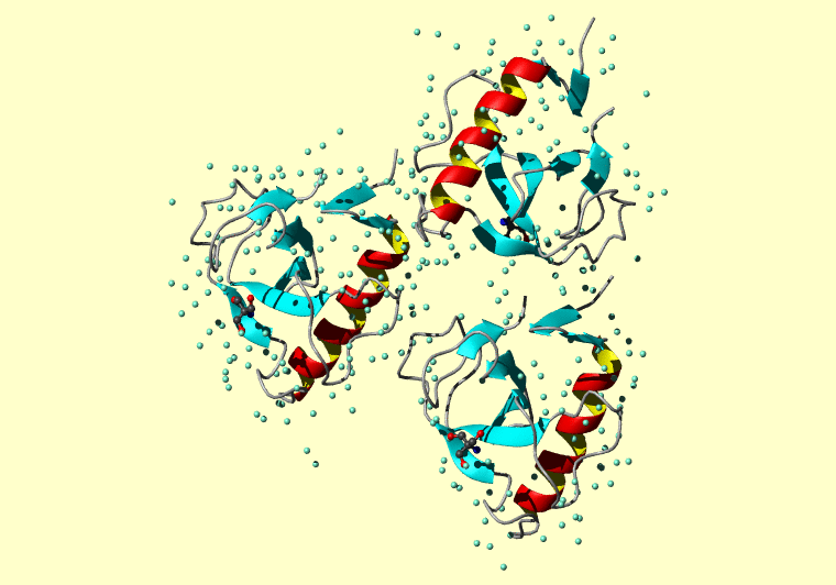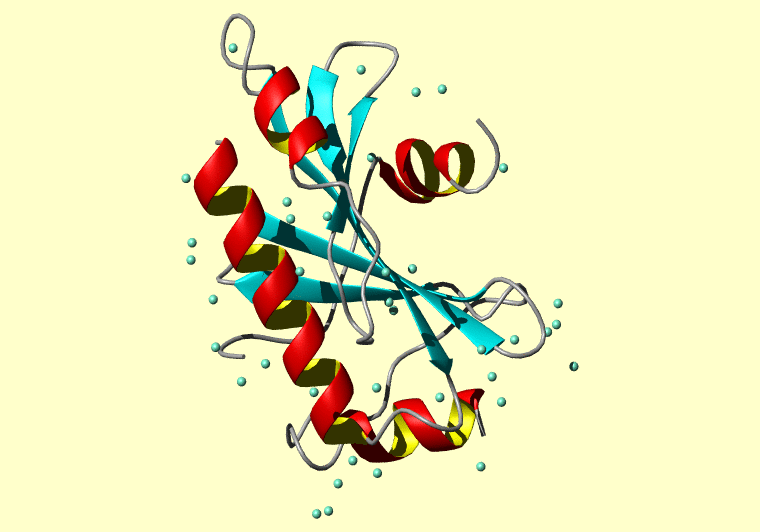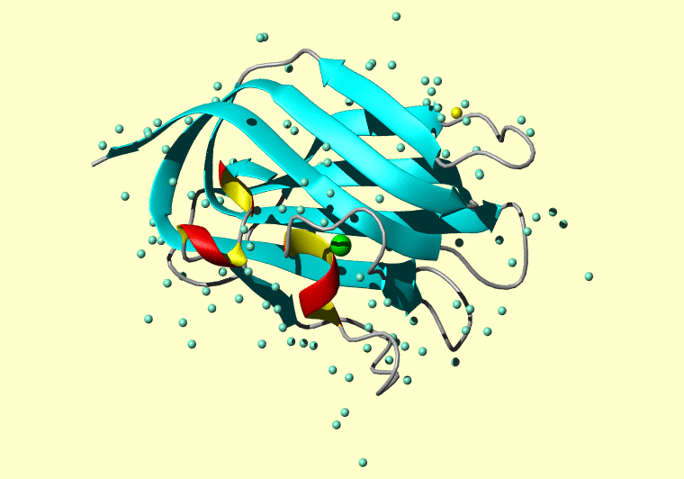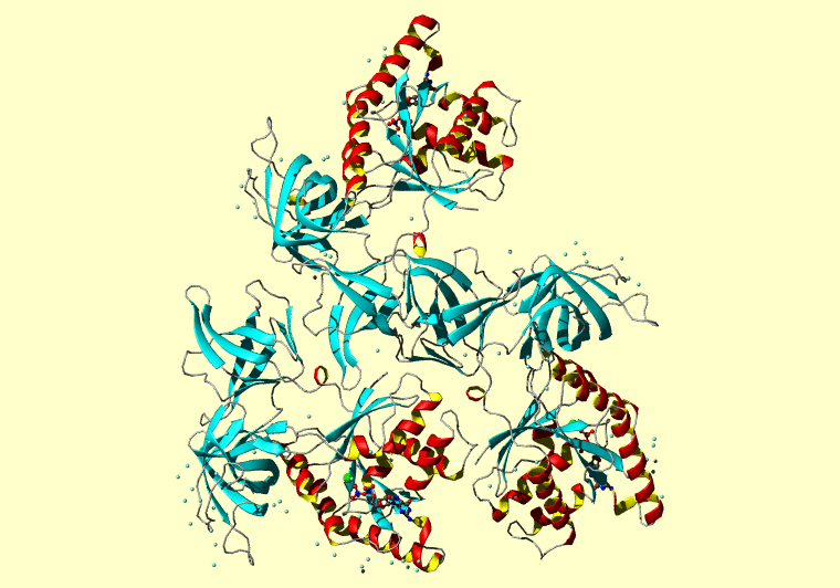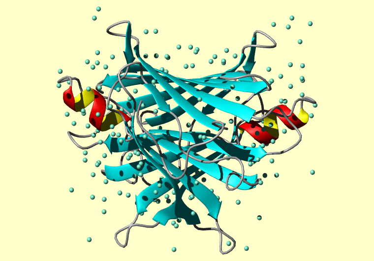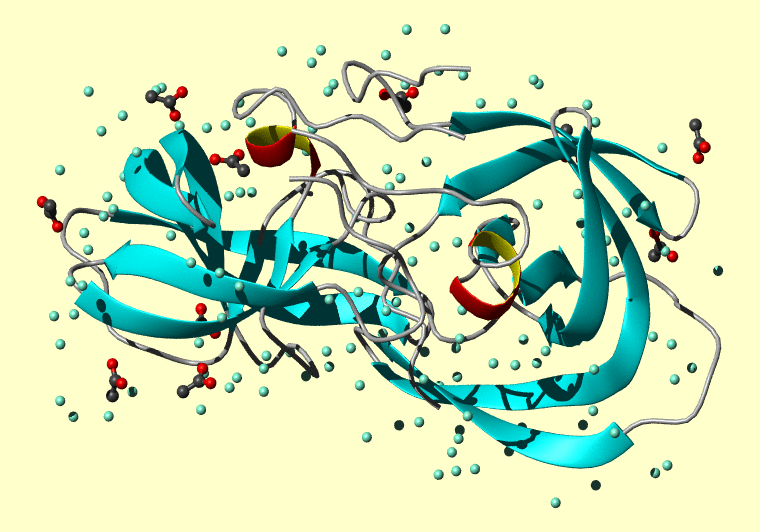 The PDB entry link is to the RCSB PDB site. Below that, a link to the BMRB entry is given for those PDB entries originating from NMR studies that have NMR experimental data deposited with BMRB. The reverse index can be found here. A version with white background exists here. The image itself links to a larger version. Information on how to use this resource to show a "Molecule of the Hour" on your windows desktop is given here.