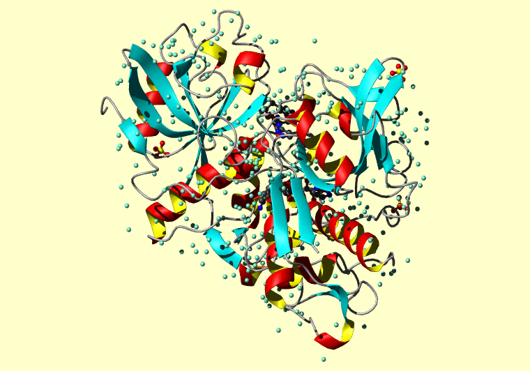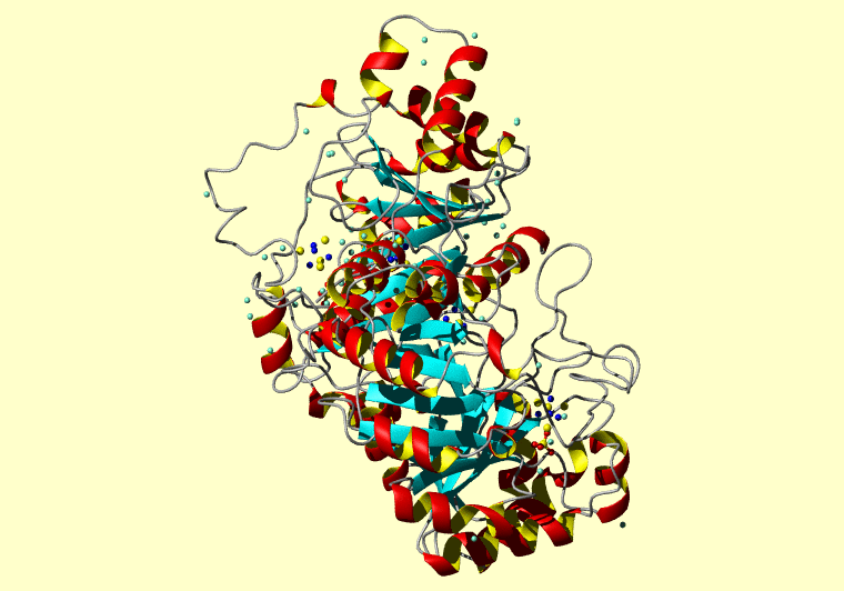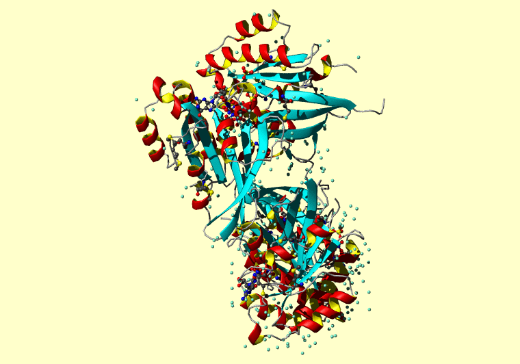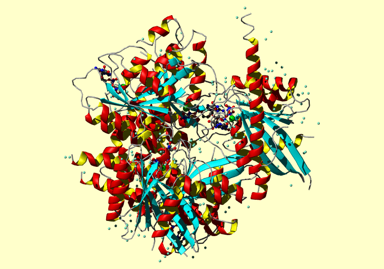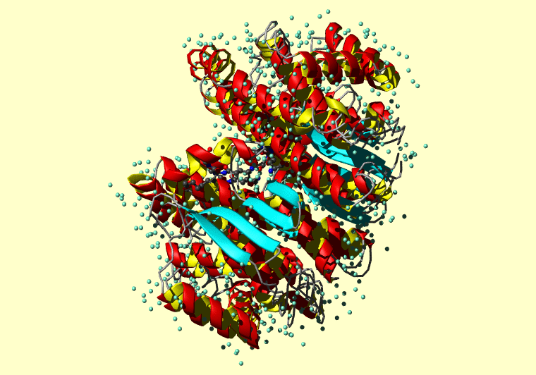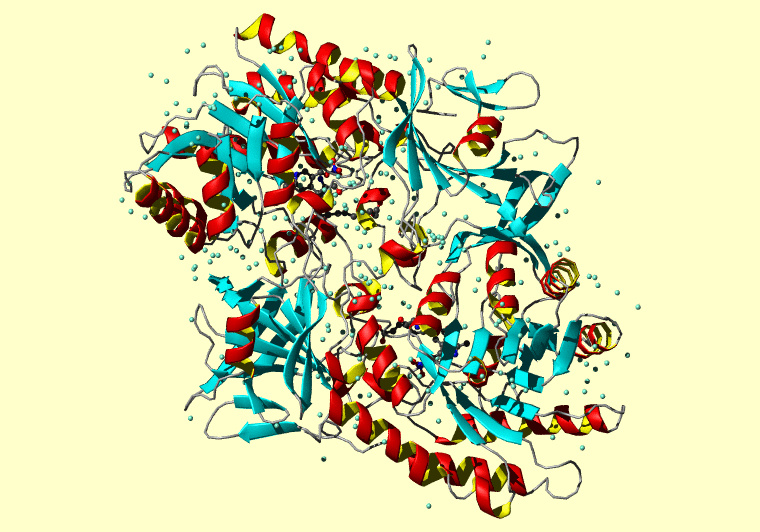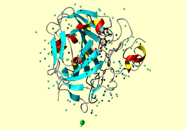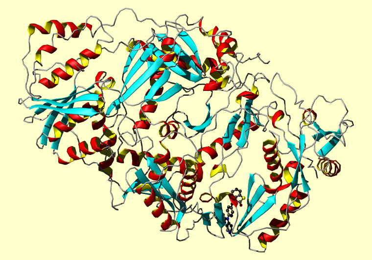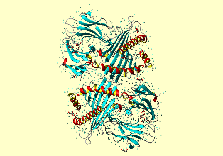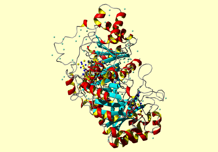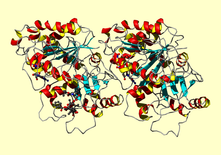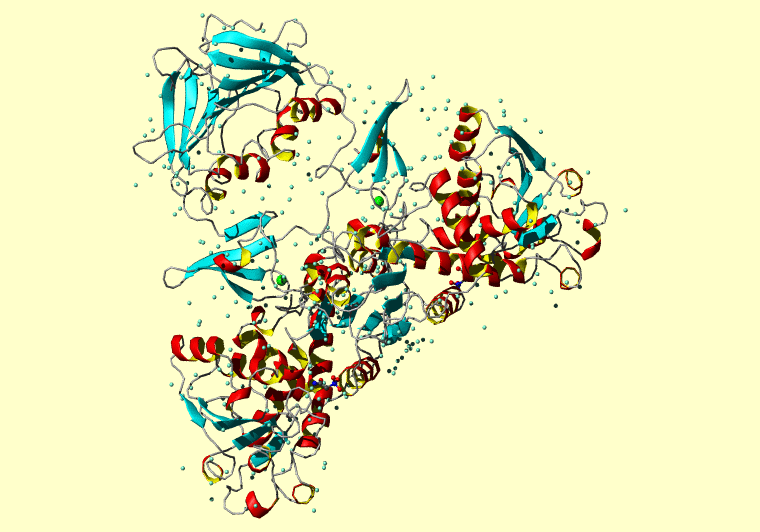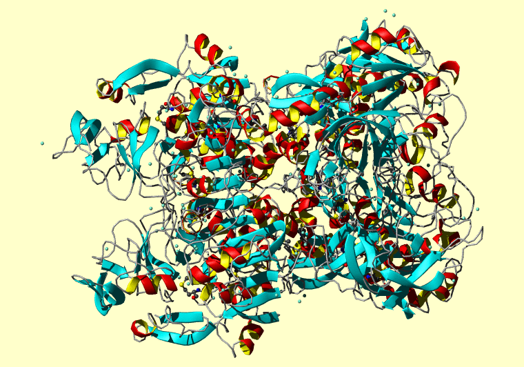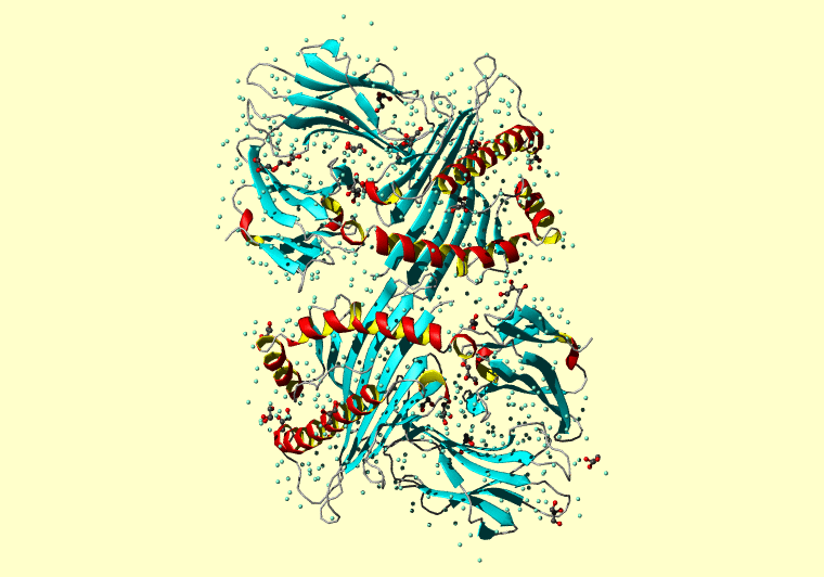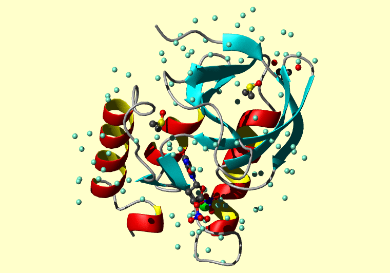 The PDB entry link is to the RCSB PDB site. Below that, a link to the BMRB entry is given for those PDB entries originating from NMR studies that have NMR experimental data deposited with BMRB. The reverse index can be found here. A version with white background exists here. The image itself links to a larger version. Information on how to use this resource to show a "Molecule of the Hour" on your windows desktop is given here.