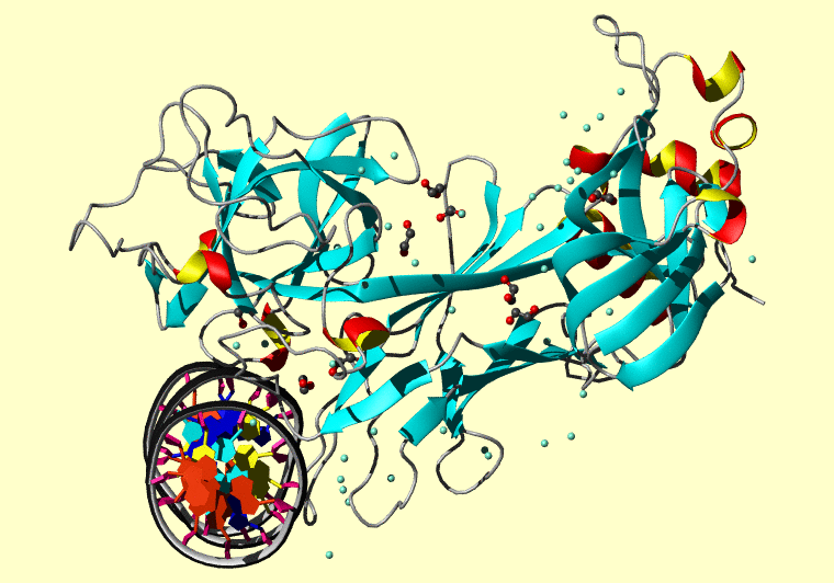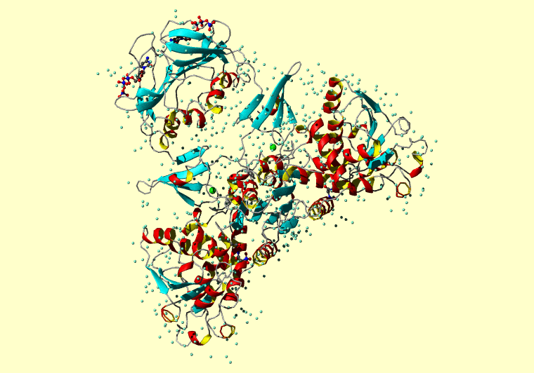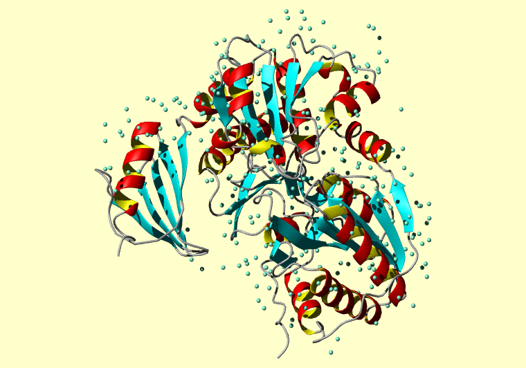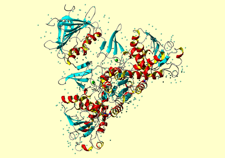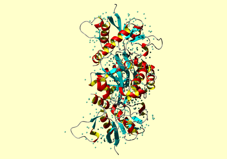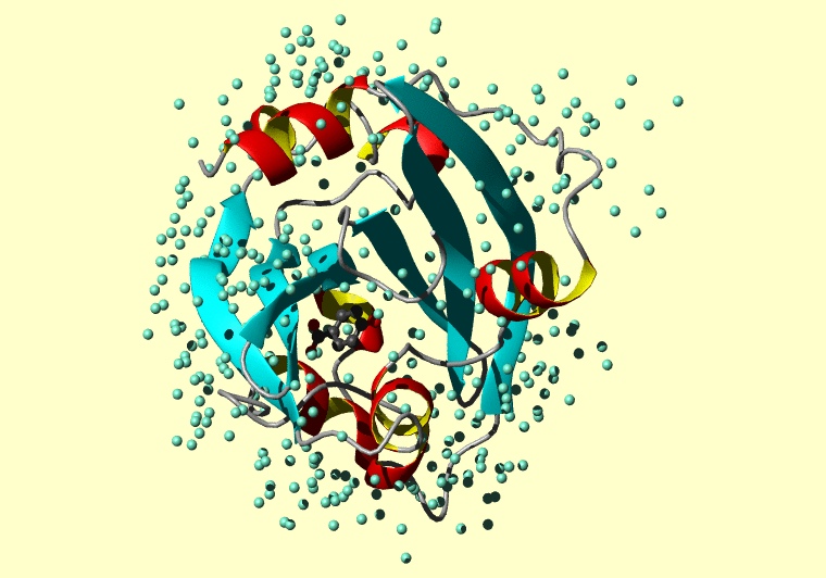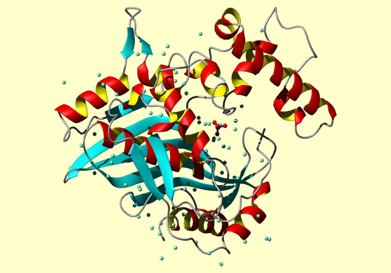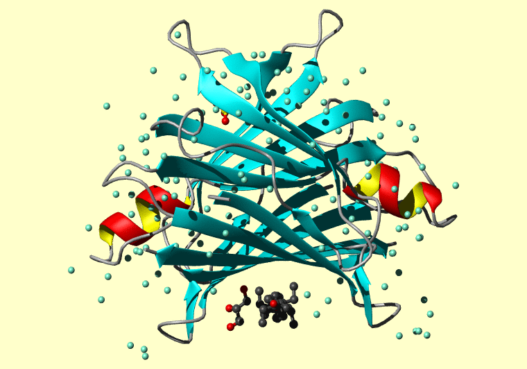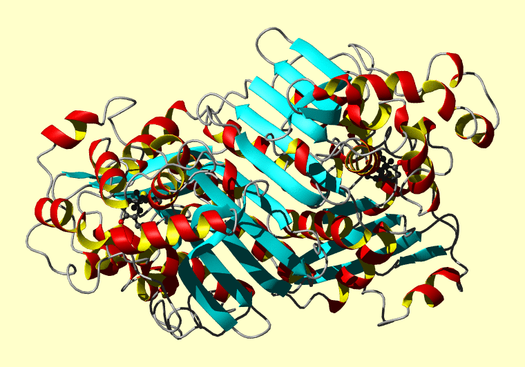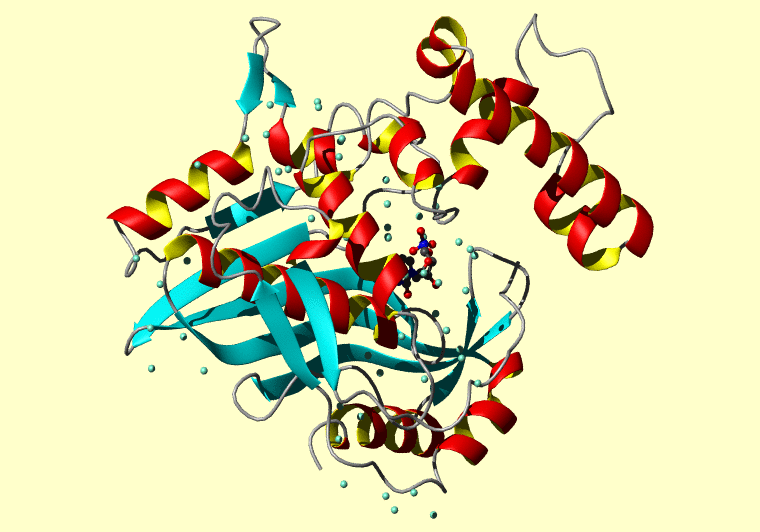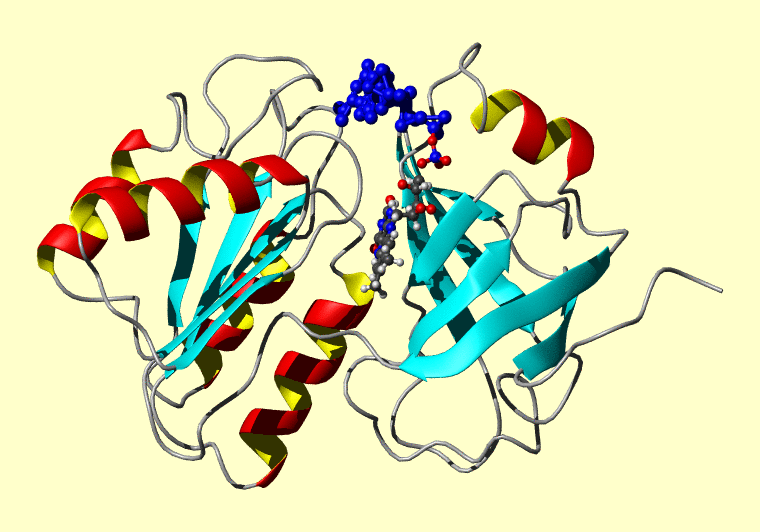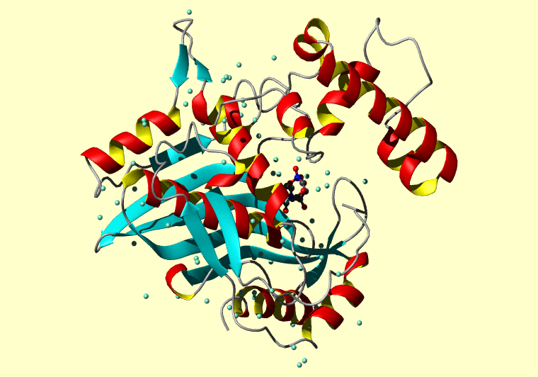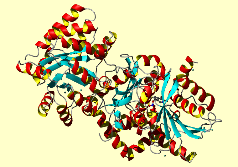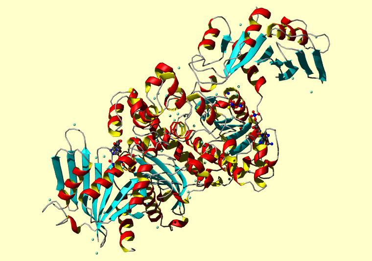The PDB entry link is to the RCSB PDB site. Below that, a link to the BMRB entry is given for those PDB entries originating from NMR studies that have NMR experimental data deposited with BMRB. The reverse index can be found here. A version with white background exists here. The image itself links to a larger version. Information on how to use this resource to show a "Molecule of the Hour" on your windows desktop is given here.
