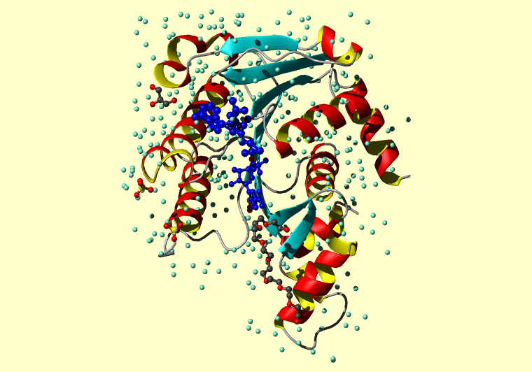 Koradi,R., Billeter,M. and Wuthrich,K. (1996). MOLMOL: a program for display and analysis of macromolecular structures. J. Mol. Graph. 14, 51-55.