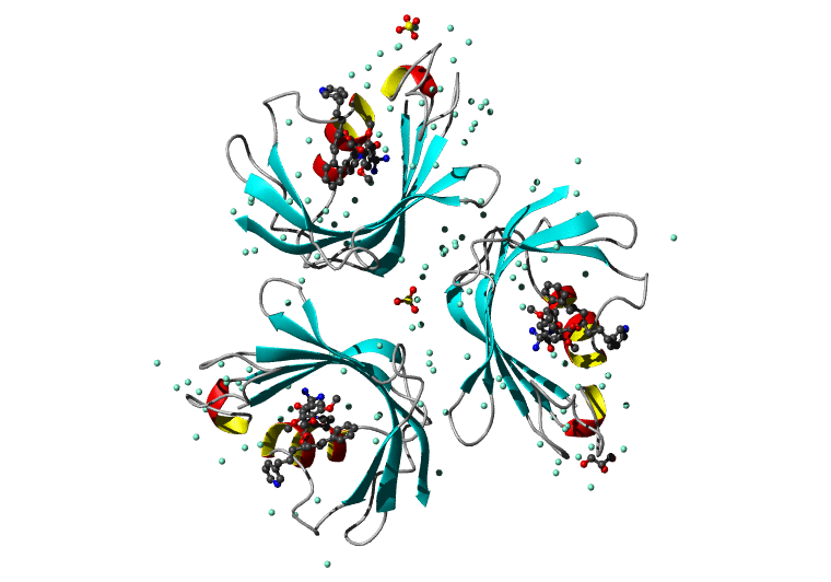 Koradi,R., Billeter,M. and Wuthrich,K. (1996). MOLMOL: a program for display and analysis of macromolecular structures. J. Mol. Graph. 14, 51-55.