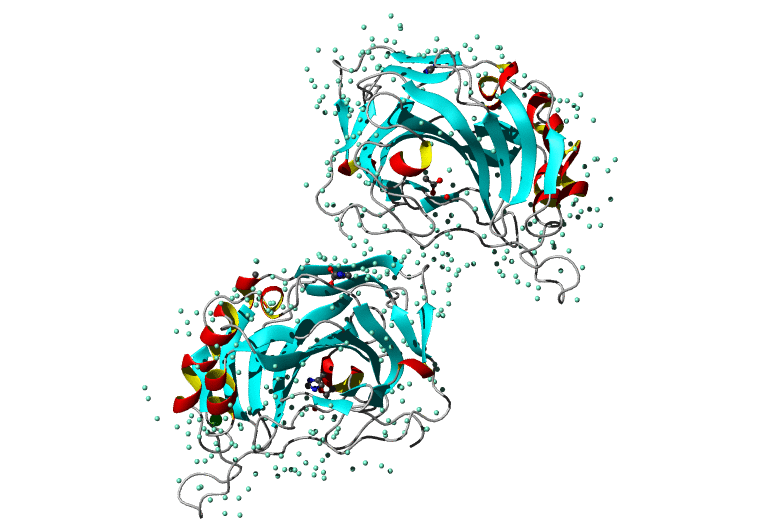 Koradi,R., Billeter,M. and Wuthrich,K. (1996). MOLMOL: a program for display and analysis of macromolecular structures. J. Mol. Graph. 14, 51-55.