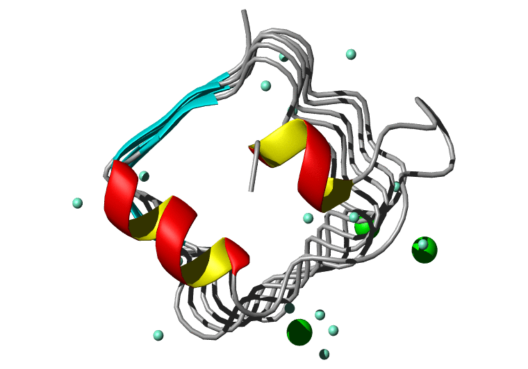 Koradi,R., Billeter,M. and Wuthrich,K. (1996). MOLMOL: a program for display and analysis of macromolecular structures. J. Mol. Graph. 14, 51-55.