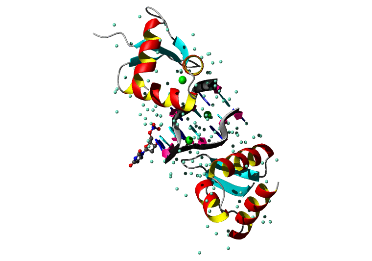 Koradi,R., Billeter,M. and Wuthrich,K. (1996). MOLMOL: a program for display and analysis of macromolecular structures. J. Mol. Graph. 14, 51-55.