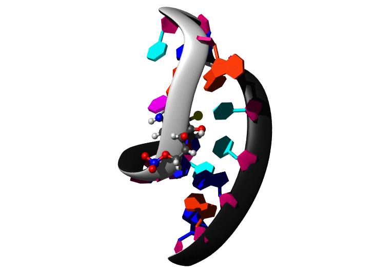 Koradi,R., Billeter,M. and Wuthrich,K. (1996). MOLMOL: a program for display and analysis of macromolecular structures. J. Mol. Graph. 14, 51-55.