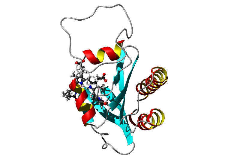 Koradi,R., Billeter,M. and Wuthrich,K. (1996). MOLMOL: a program for display and analysis of macromolecular structures. J. Mol. Graph. 14, 51-55.