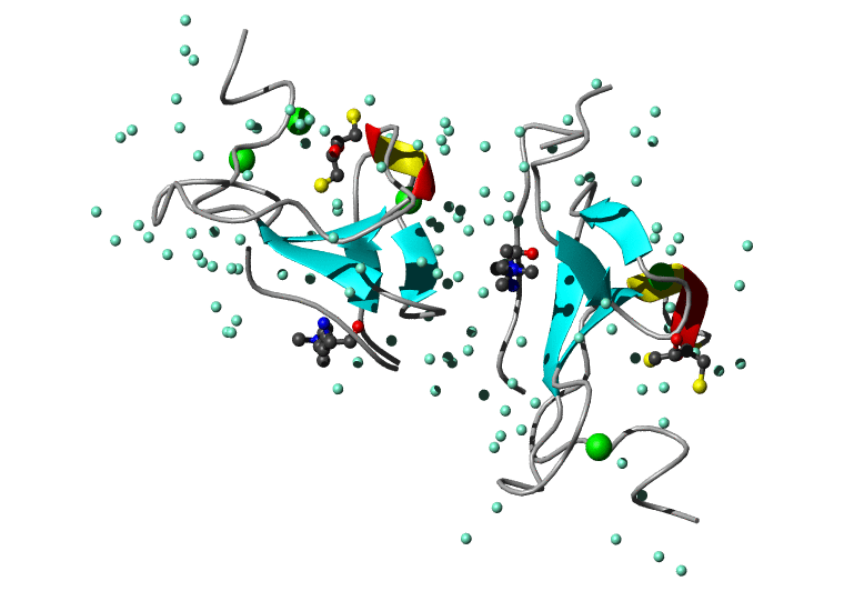 Koradi,R., Billeter,M. and Wuthrich,K. (1996). MOLMOL: a program for display and analysis of macromolecular structures. J. Mol. Graph. 14, 51-55.