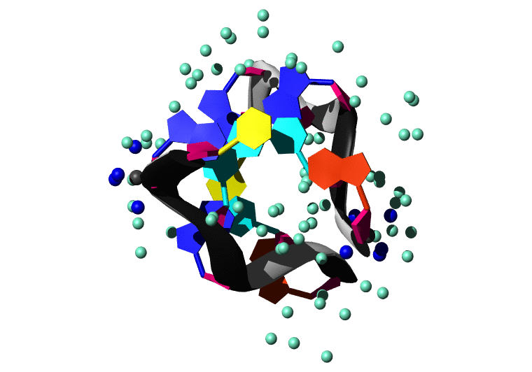 Koradi,R., Billeter,M. and Wuthrich,K. (1996). MOLMOL: a program for display and analysis of macromolecular structures. J. Mol. Graph. 14, 51-55.