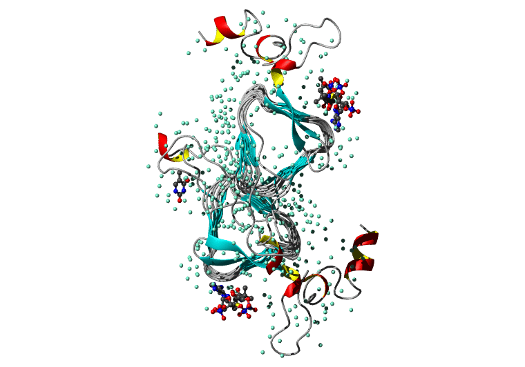 Koradi,R., Billeter,M. and Wuthrich,K. (1996). MOLMOL: a program for display and analysis of macromolecular structures. J. Mol. Graph. 14, 51-55.