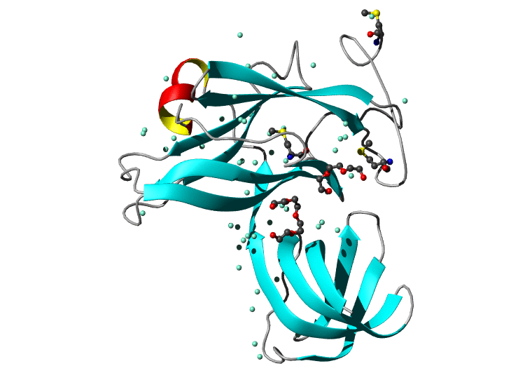 Koradi,R., Billeter,M. and Wuthrich,K. (1996). MOLMOL: a program for display and analysis of macromolecular structures. J. Mol. Graph. 14, 51-55.