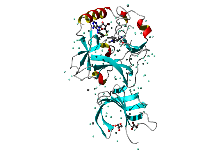 Koradi,R., Billeter,M. and Wuthrich,K. (1996). MOLMOL: a program for display and analysis of macromolecular structures. J. Mol. Graph. 14, 51-55.