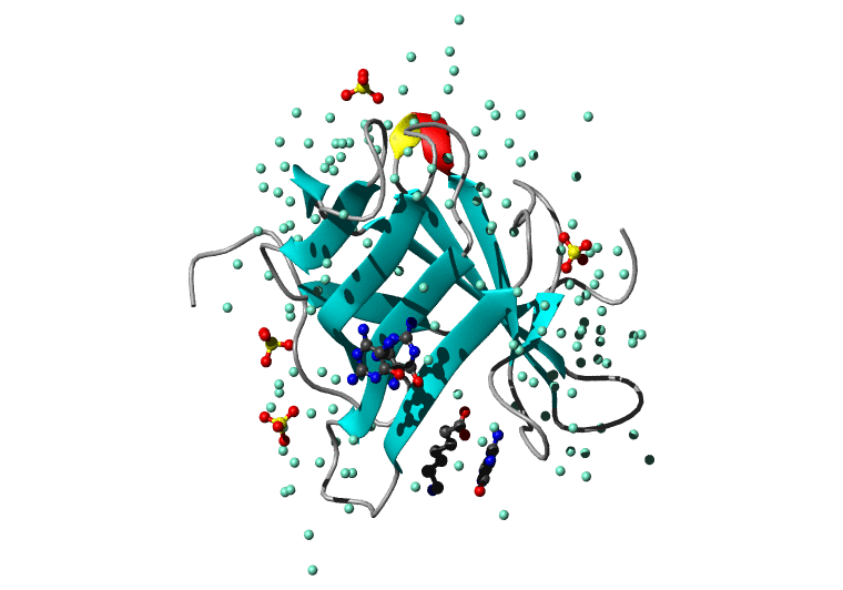 Koradi,R., Billeter,M. and Wuthrich,K. (1996). MOLMOL: a program for display and analysis of macromolecular structures. J. Mol. Graph. 14, 51-55.