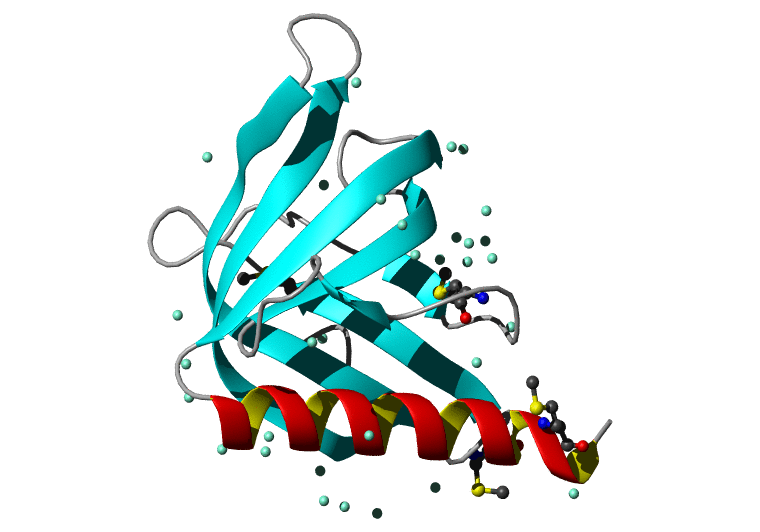 Koradi,R., Billeter,M. and Wuthrich,K. (1996). MOLMOL: a program for display and analysis of macromolecular structures. J. Mol. Graph. 14, 51-55.
